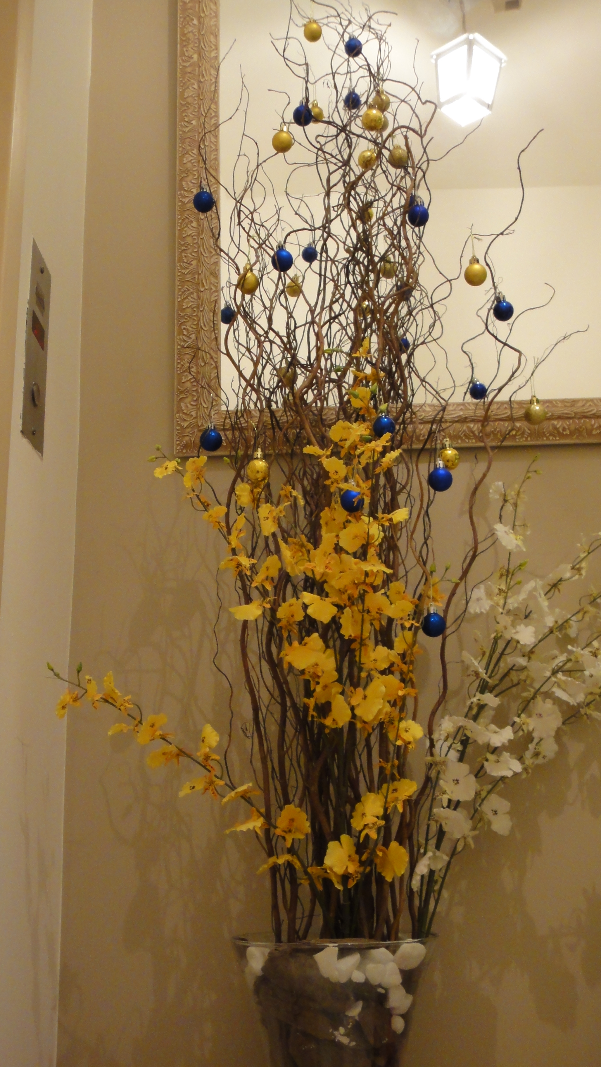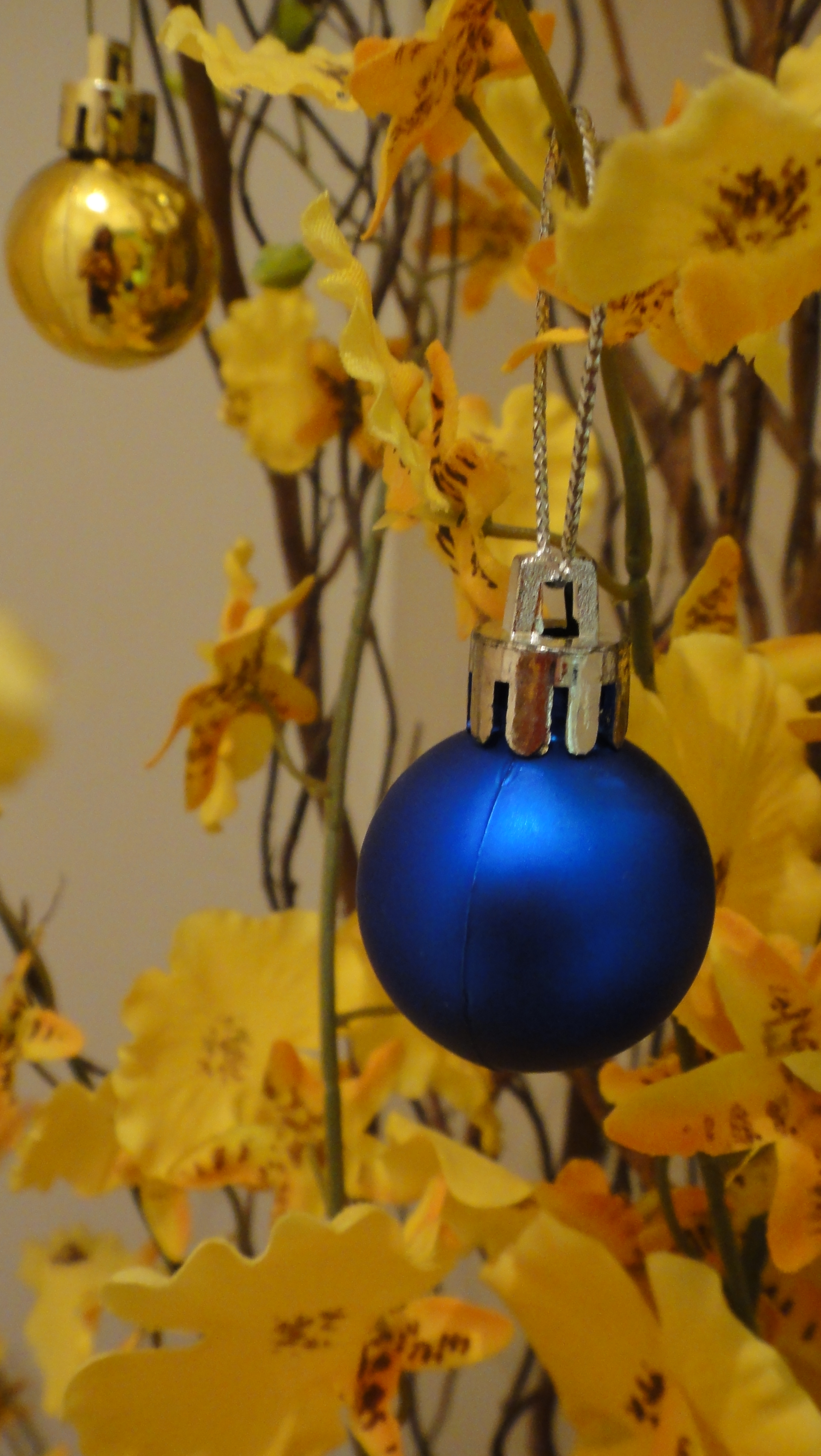 O meu jarro de galhos secos, agora decorado com bolinhas coloridas, virou uma árvore de natal divertida 🙂 🙂