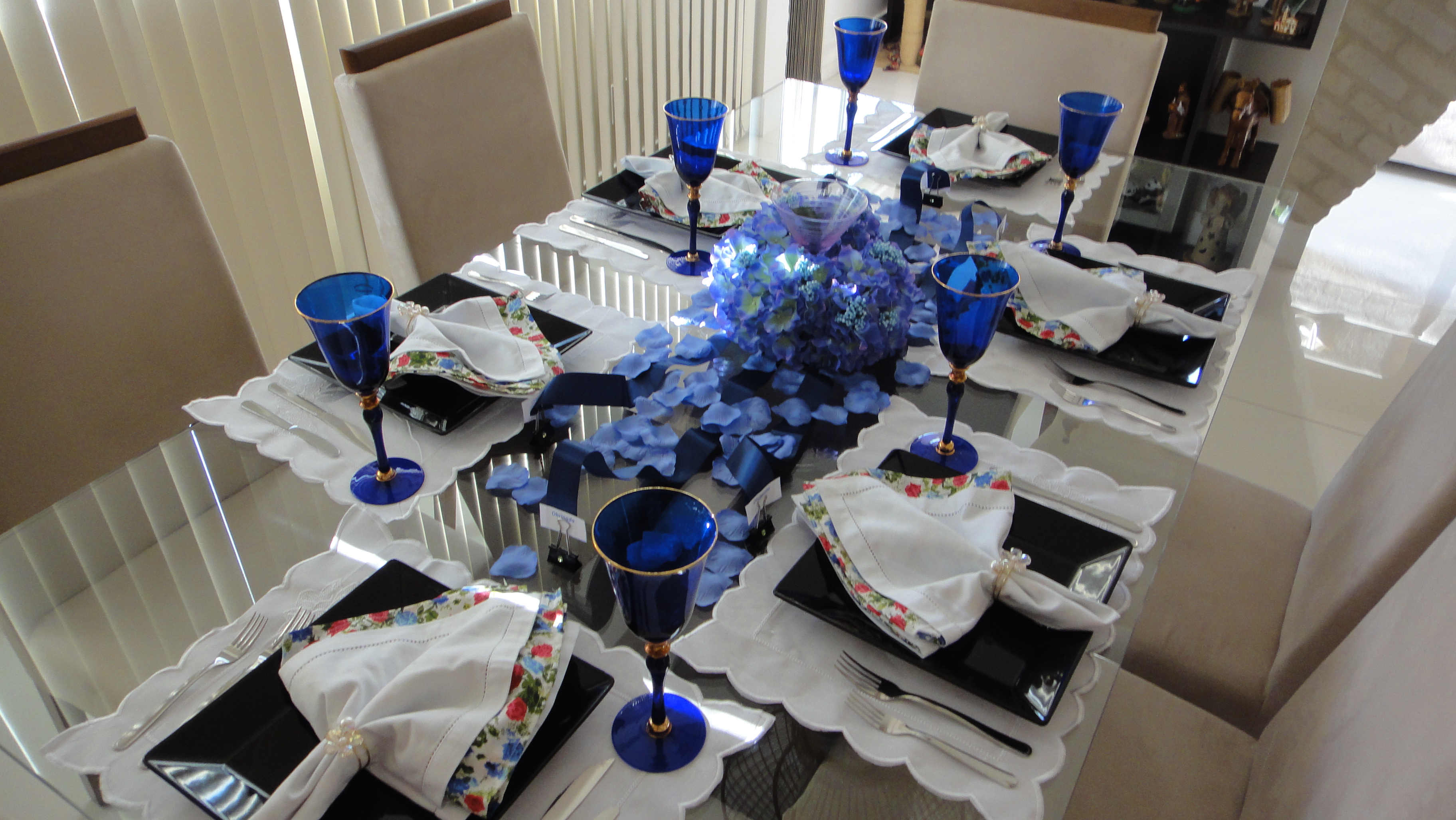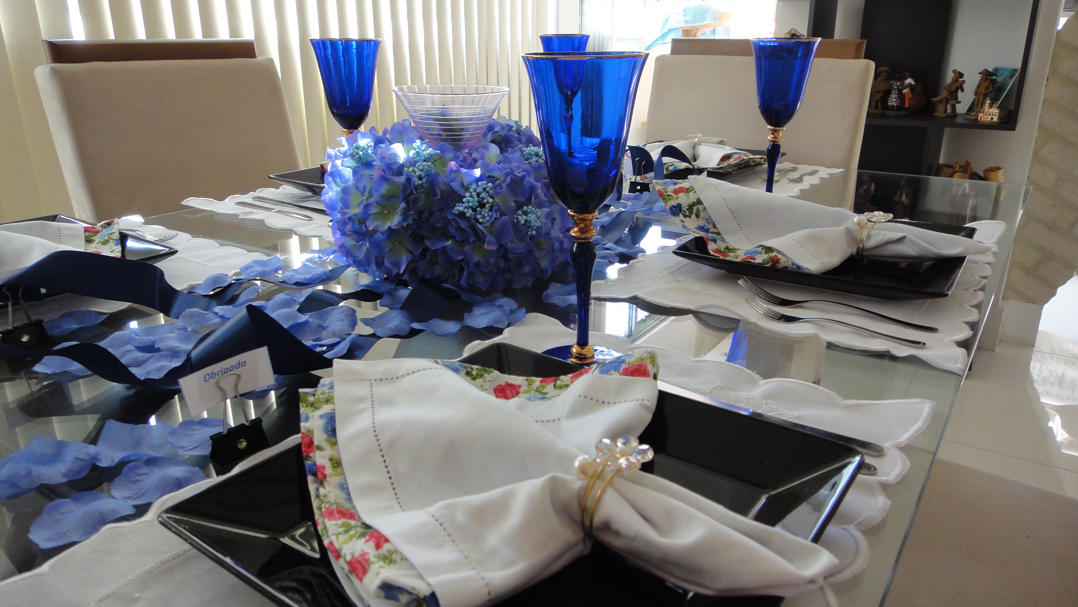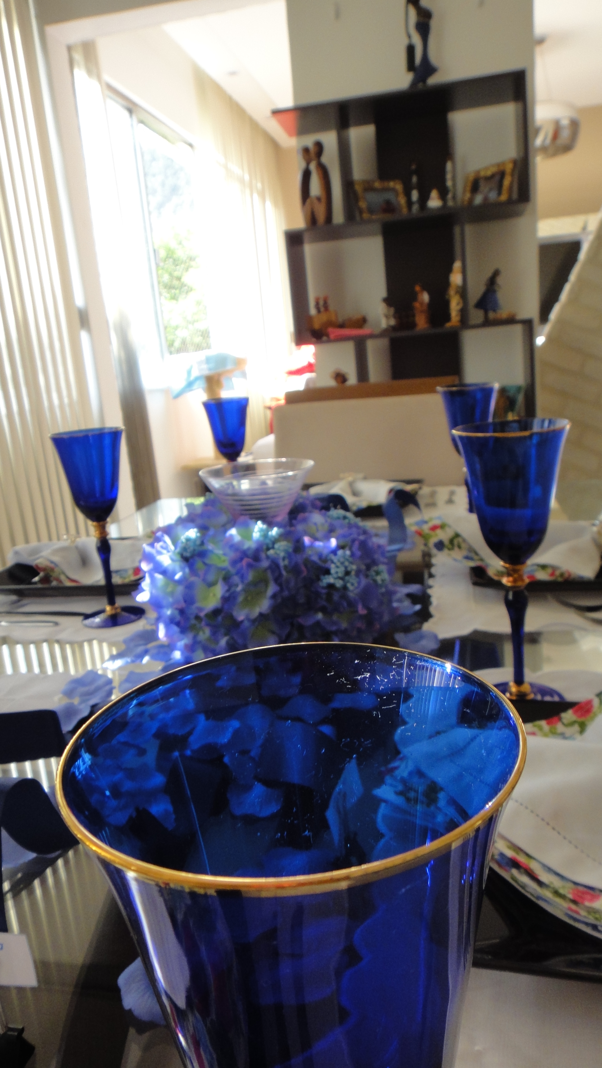 Na verdade fizemos uma comida simples e convidamos alguns amigos dela para jantar aqui em casa. Resolvemos apostar no azul.