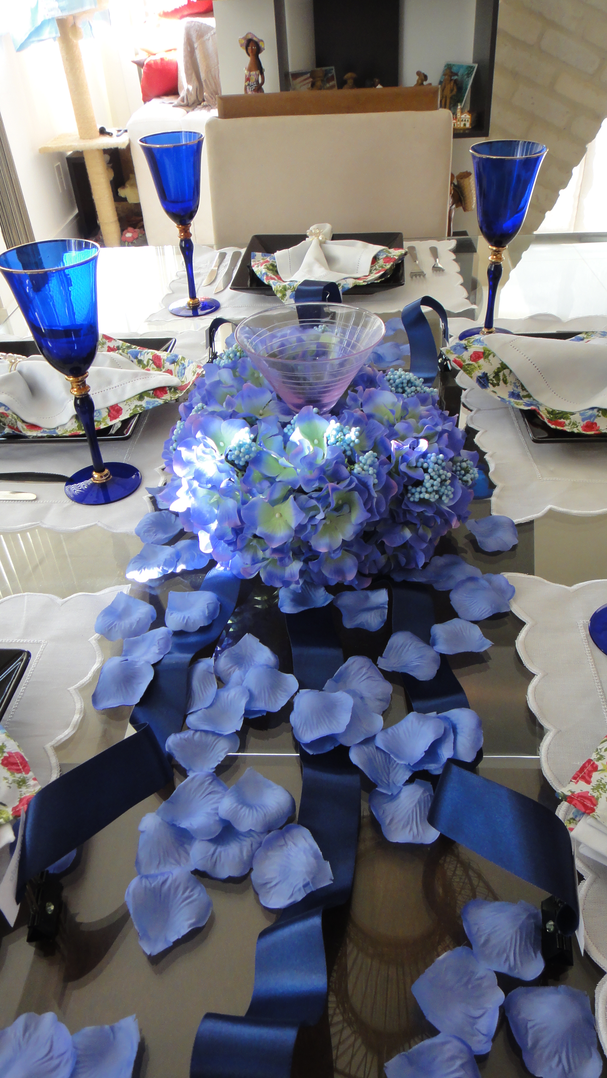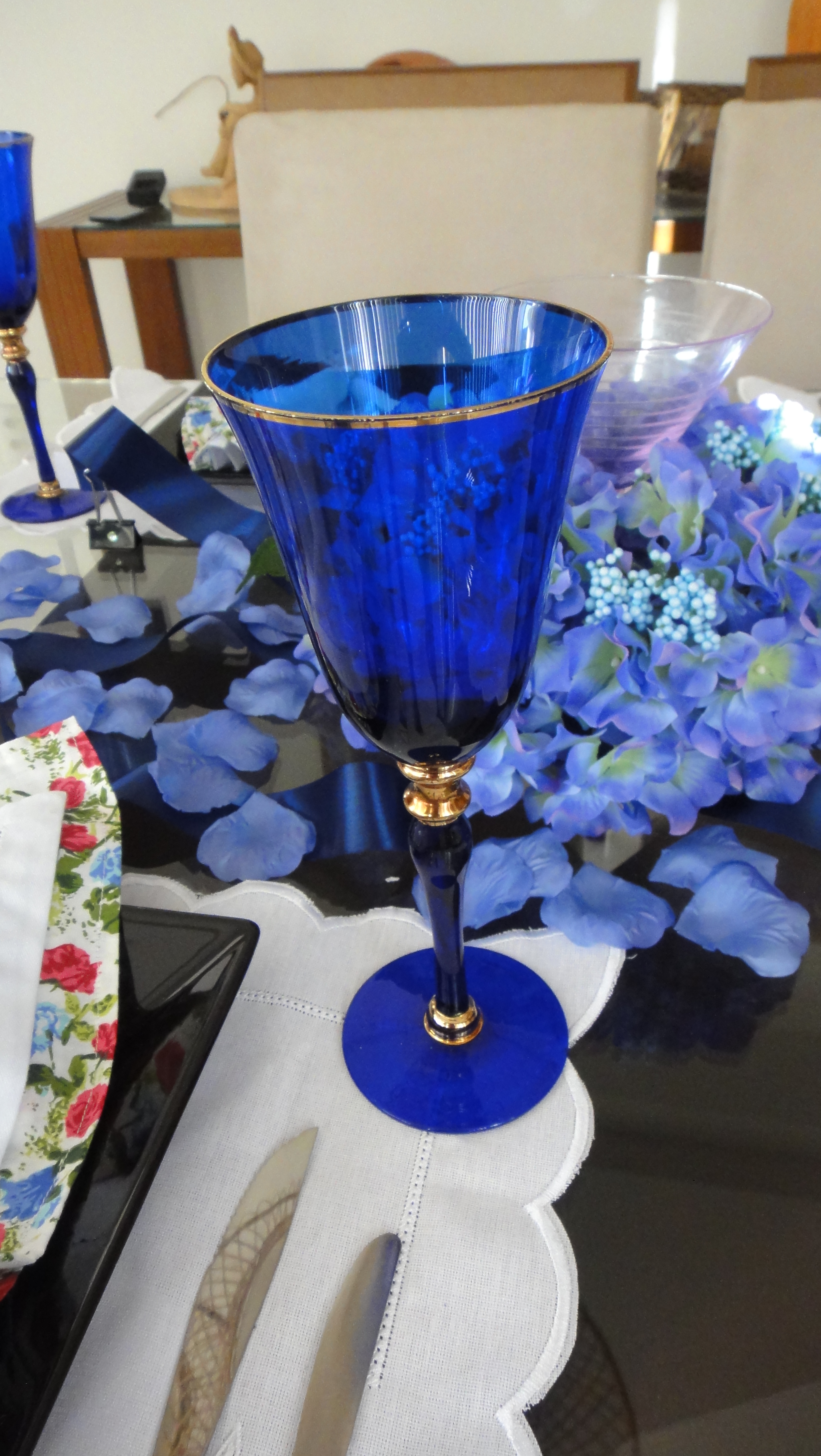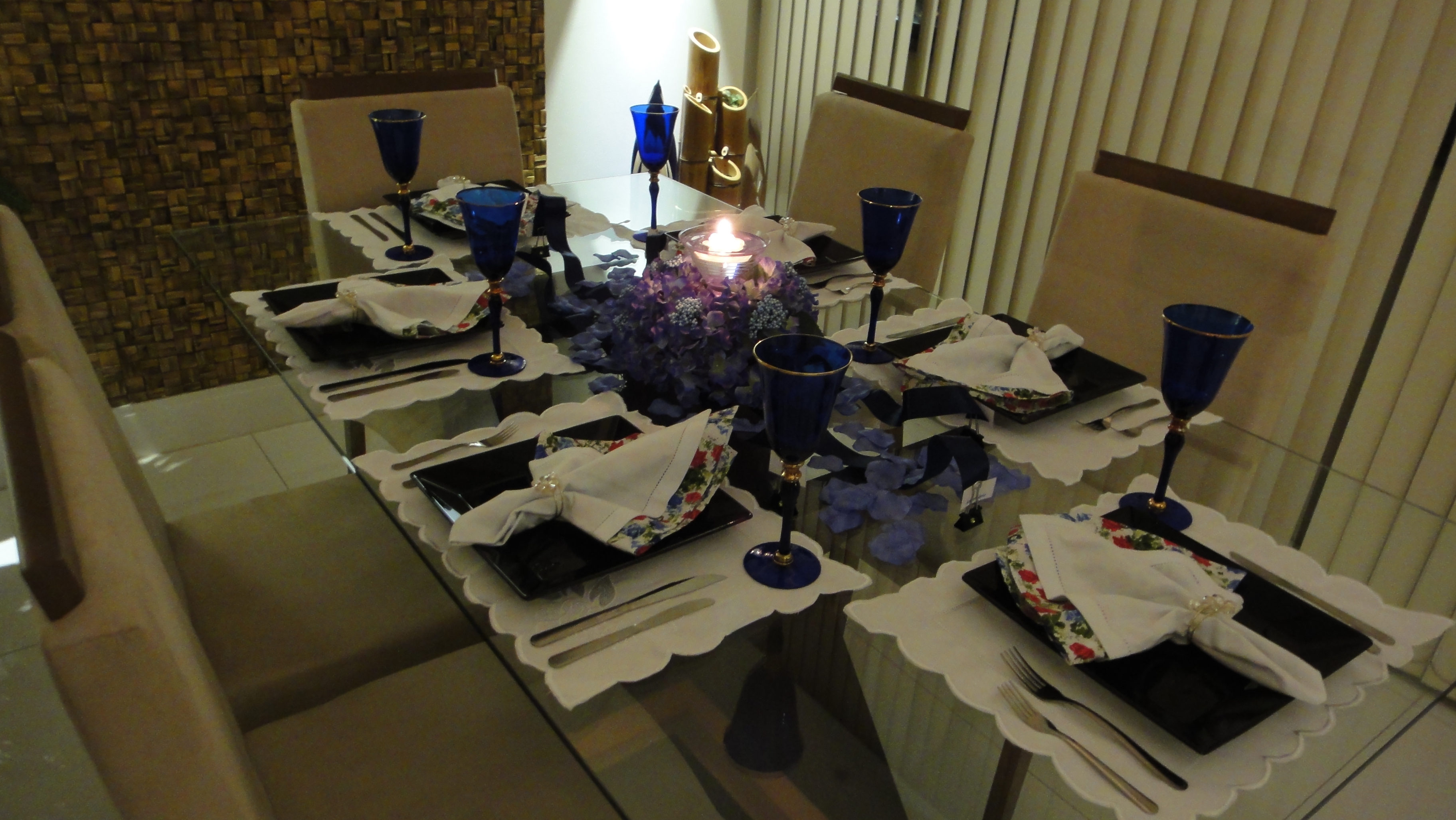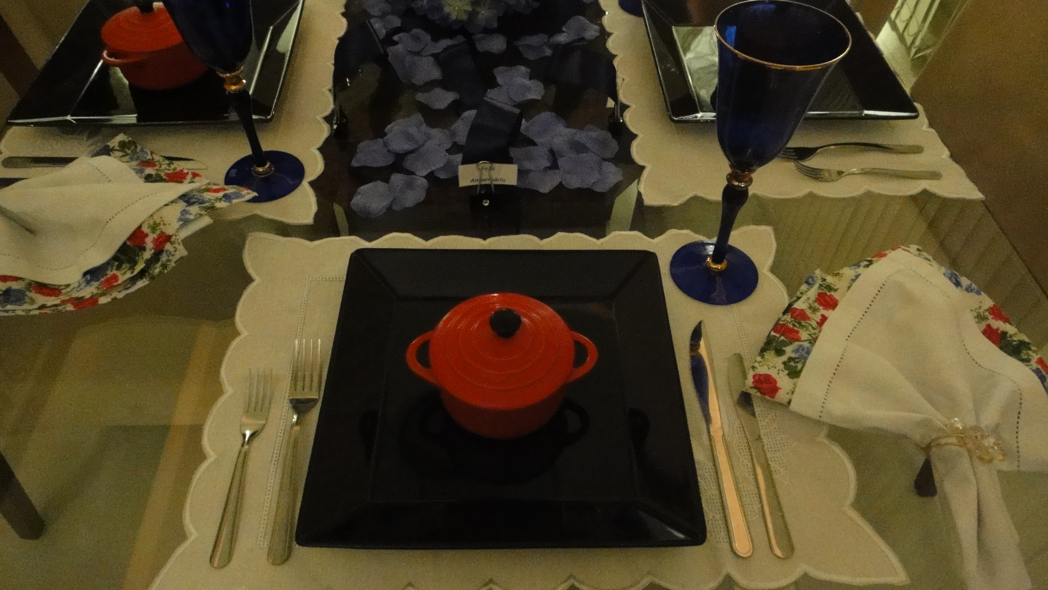 Na verdade fizemos uma comida simples e convidamos alguns amigos dela para jantar aqui em casa. Resolvemos apostar no azul.