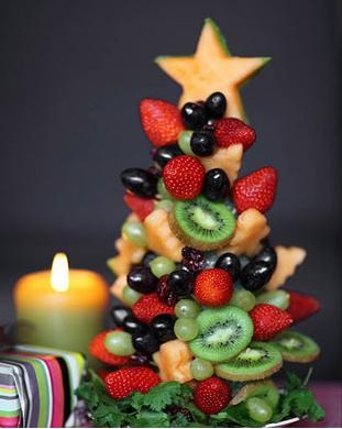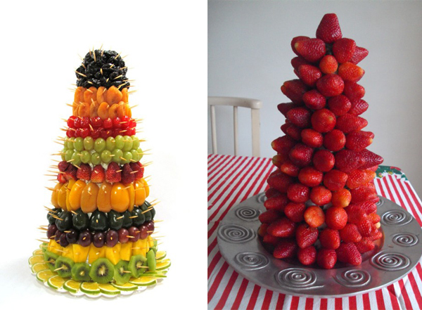 Outra ideia que tem sido muito usada e que acho legal é a árvore de frutas. Seja ela colorida ou monocromática, o importante é que apesar de linda é fácil de tirar as frutas e comer.