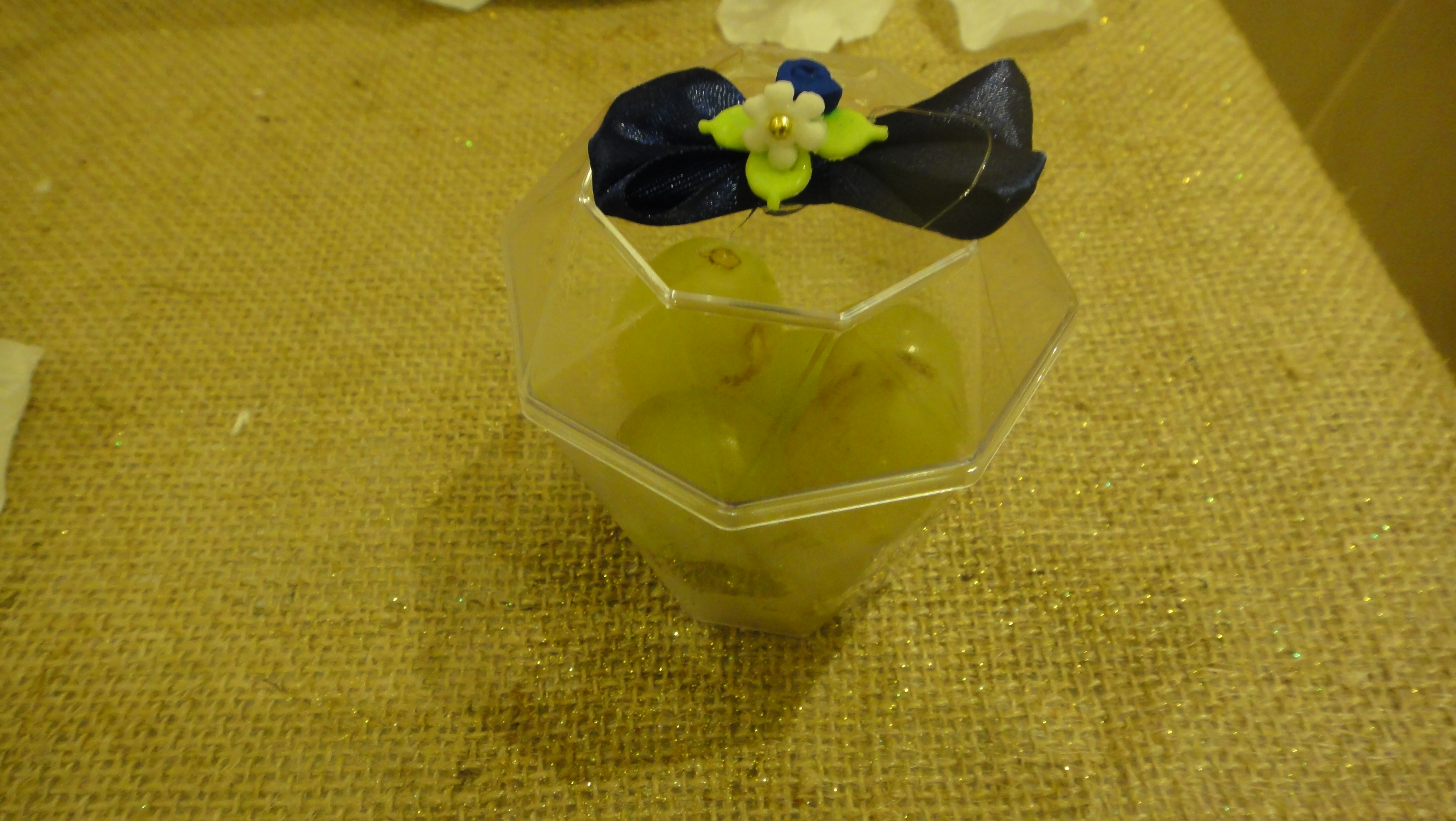 Por fim, vou mostrar os potinhos que fiz para colocar as sete uvas e distribuir para os meus convidados terem muita sorte no ano novo.