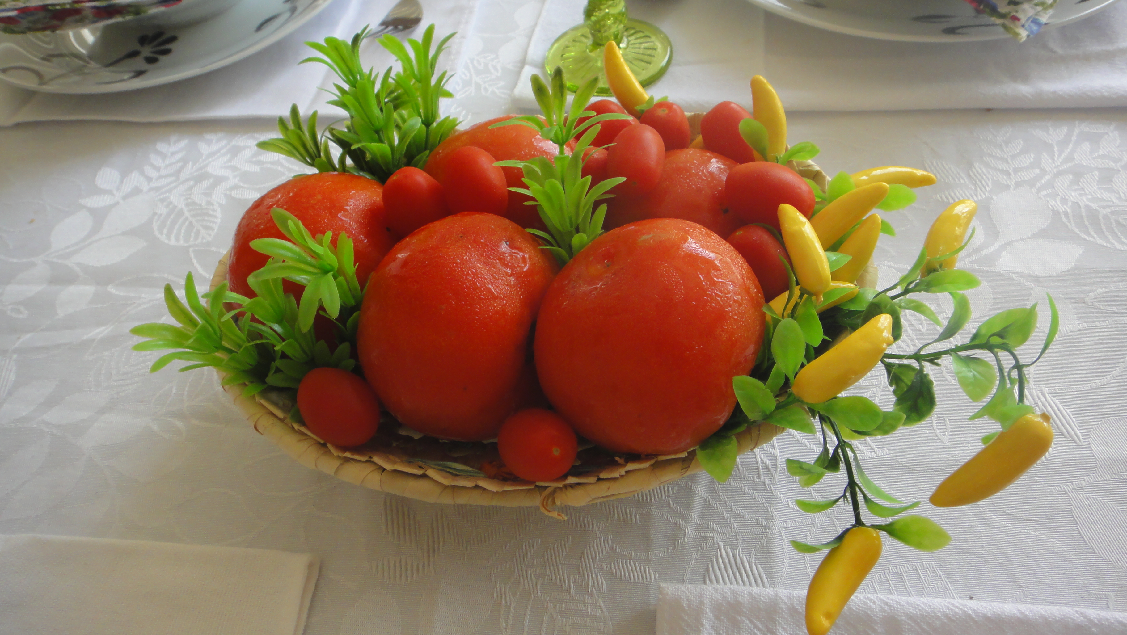 Usei tomates como arranjo. O calor está tão grande que eles suaram rsrsrs…