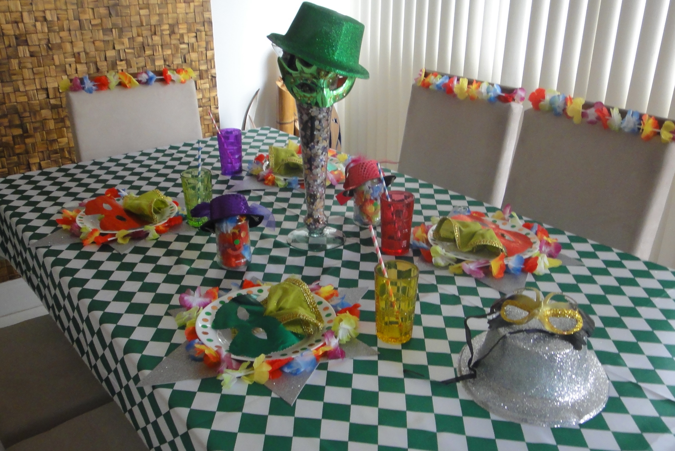 Vou postar hoje umas ideias que usei na minha mesa de carnaval. Como não sou artista, o meu “camarote” é modesto.