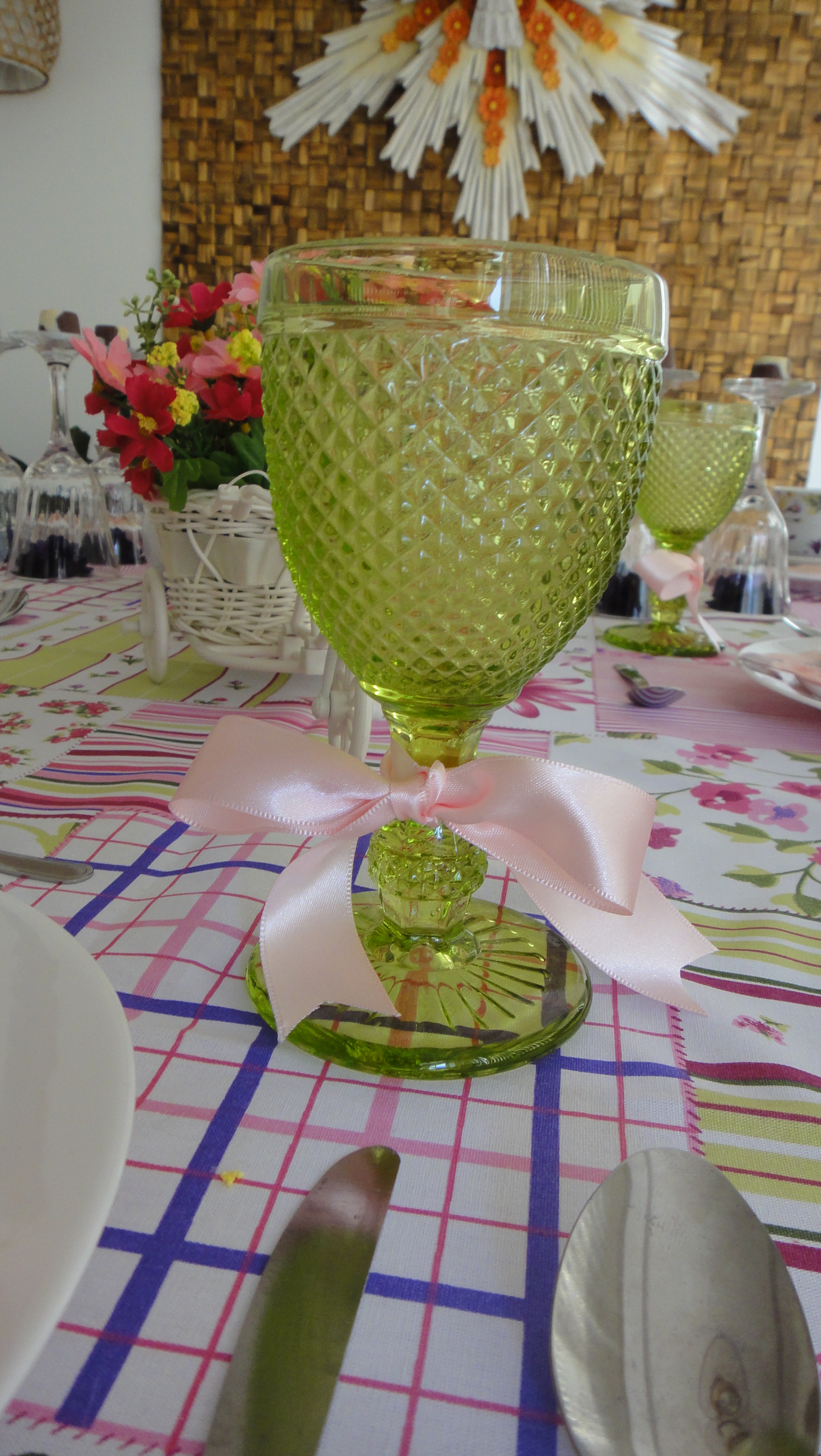 Também apostei mais uma vez nas fitas. Como sempre elas corresponderam as expectativas. Olhem que rosa bebê lindo dando um toque especial nas taças.