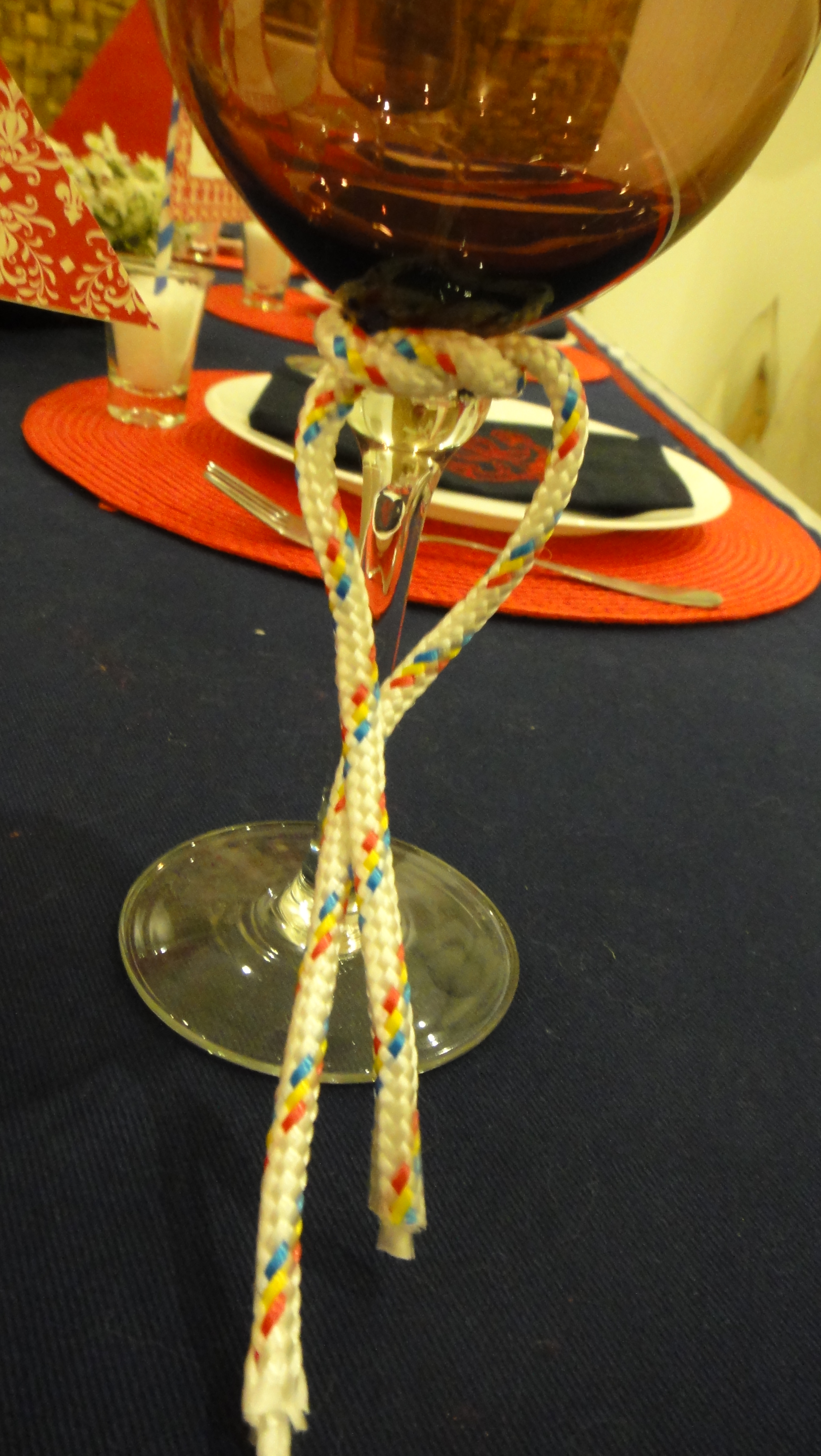 O terceiro detalhe é cordinha na taça. Afinal já tínhamos a âncora, logo não poderia faltar a corda.