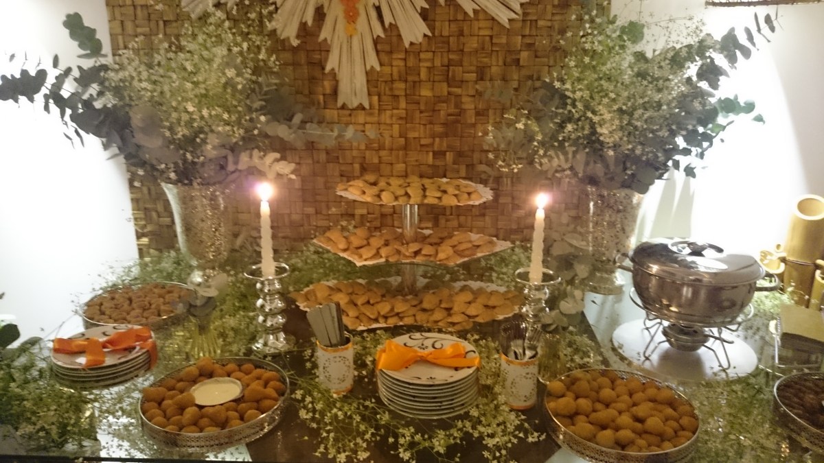 Optei por uma decoração romântica, com muito mosquitinho, velas, rendas e um misto de prata e dourado. O resultado final foi esse: