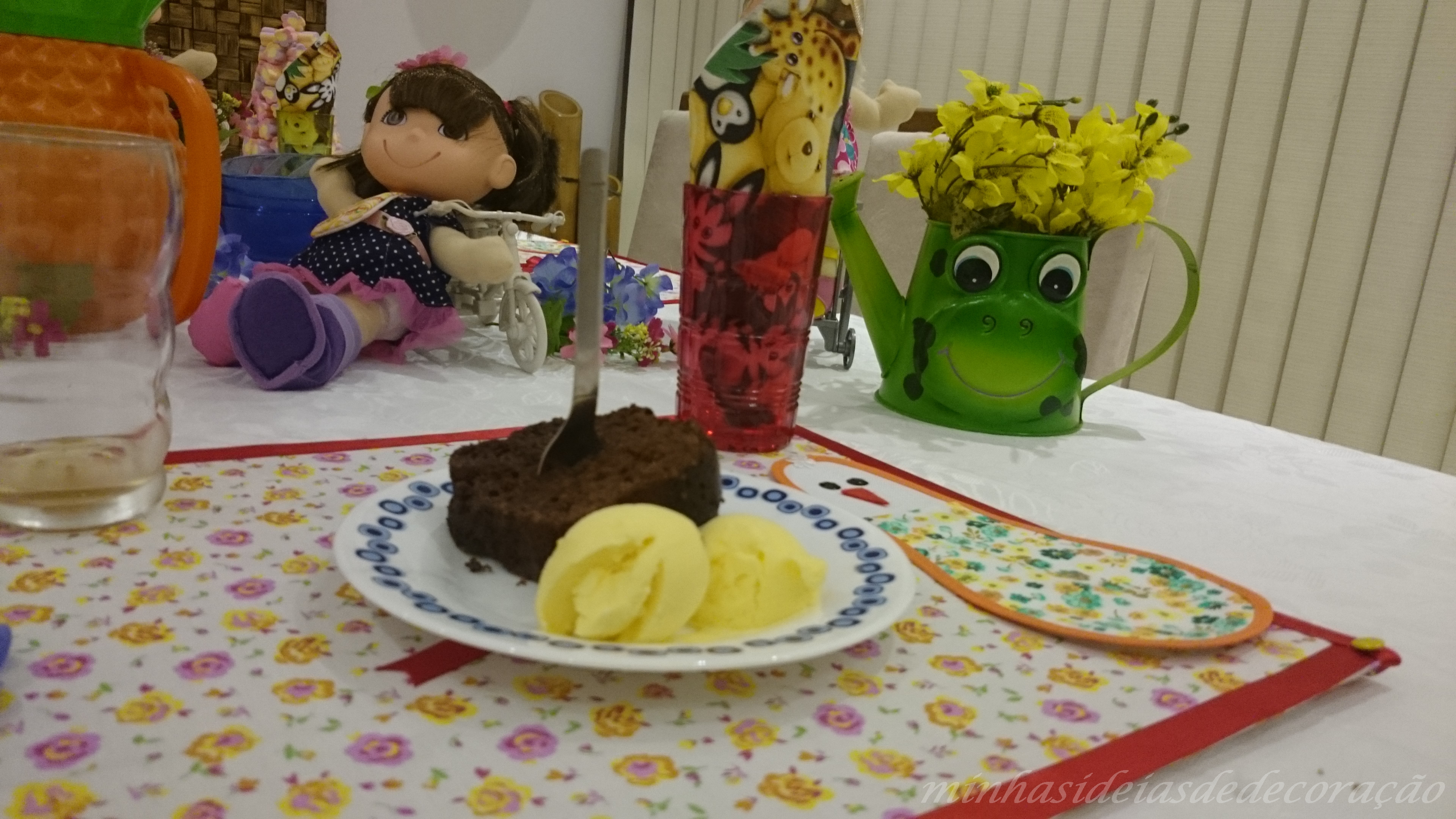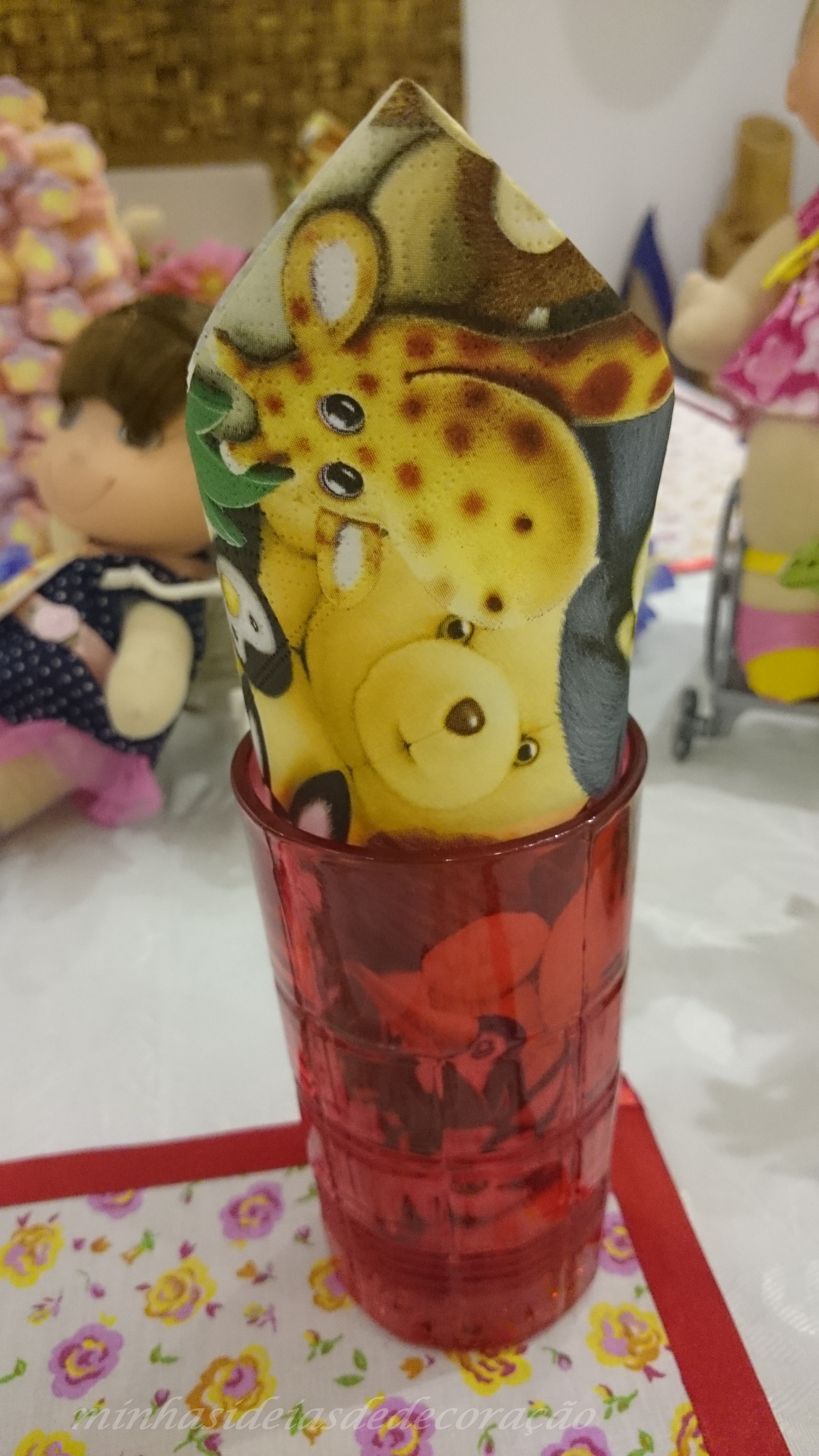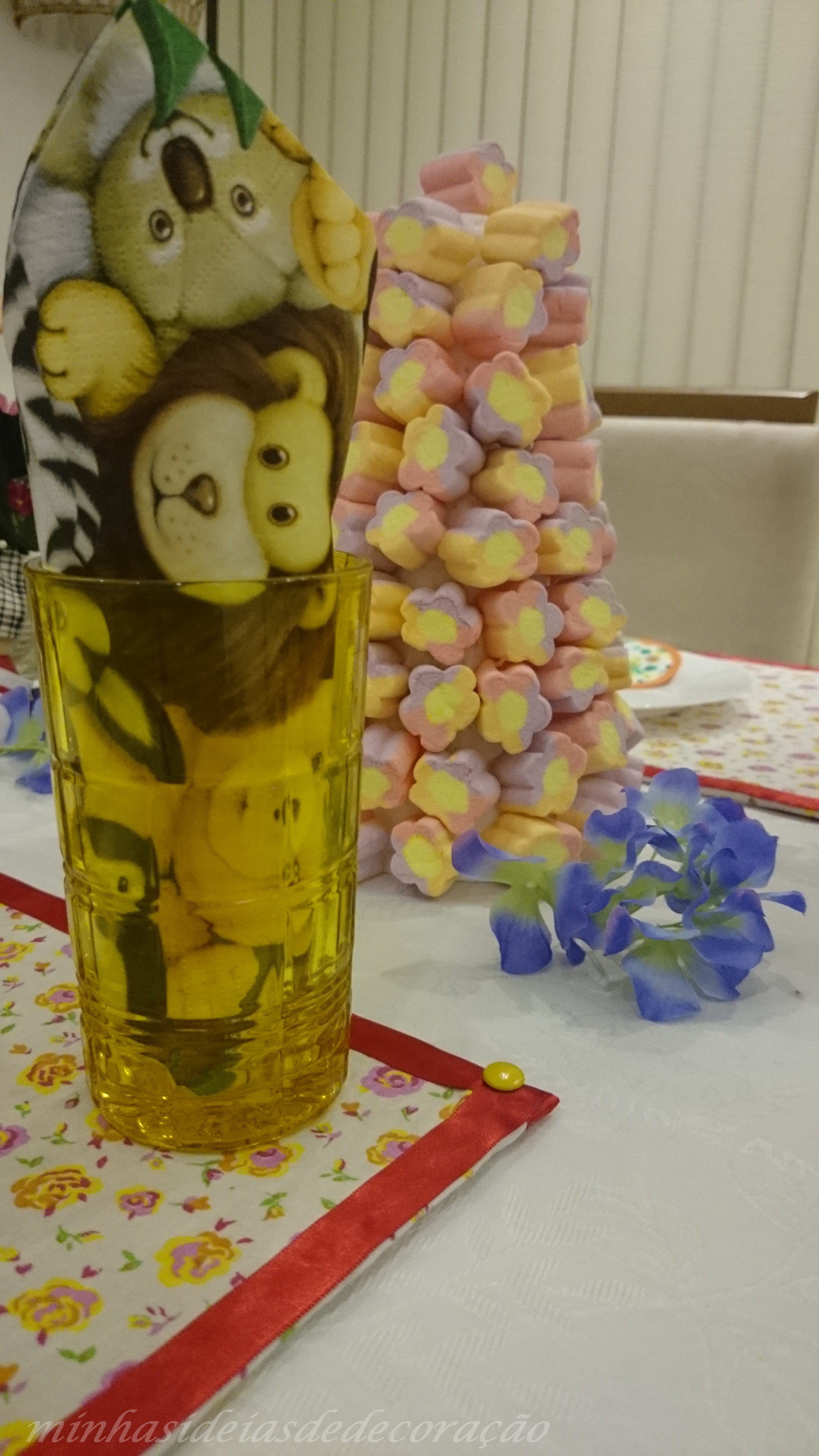 Confesso que tive ideias bem melhores do que a execução dessa mesa, mas foi bem difícil colocá-la em prática, pois não tenho muitas coisinhas de criança aqui. Também não queria nada que lembrasse uma festa infantil, afinal o objetivo não era esse.