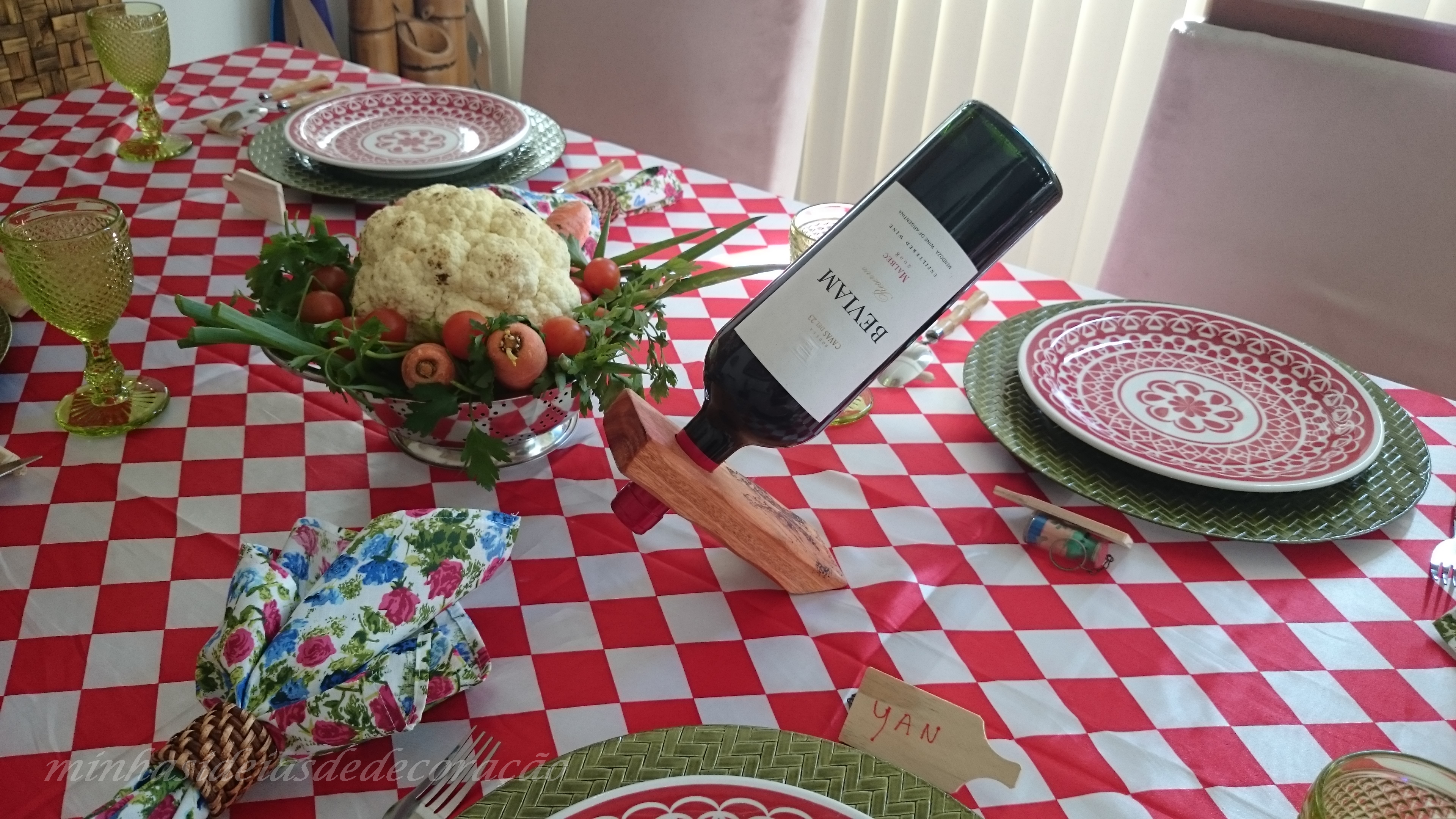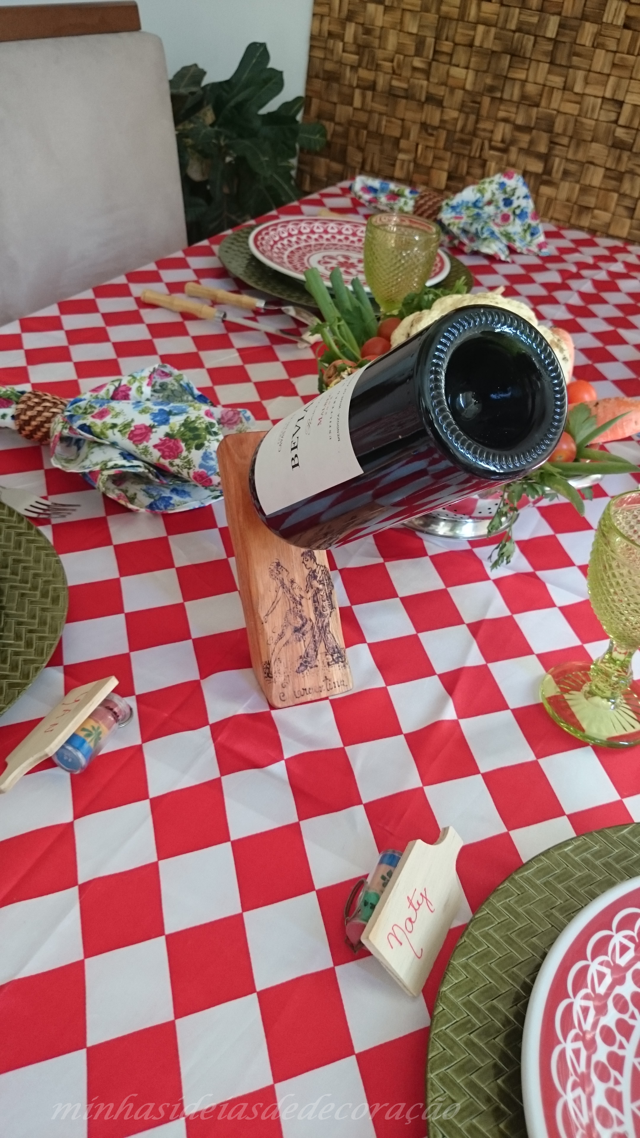 Também usei pela primeira vez um presente que ganhei. Minha irmã trouxe esse porta vinho da Argentina, achei o máximo.