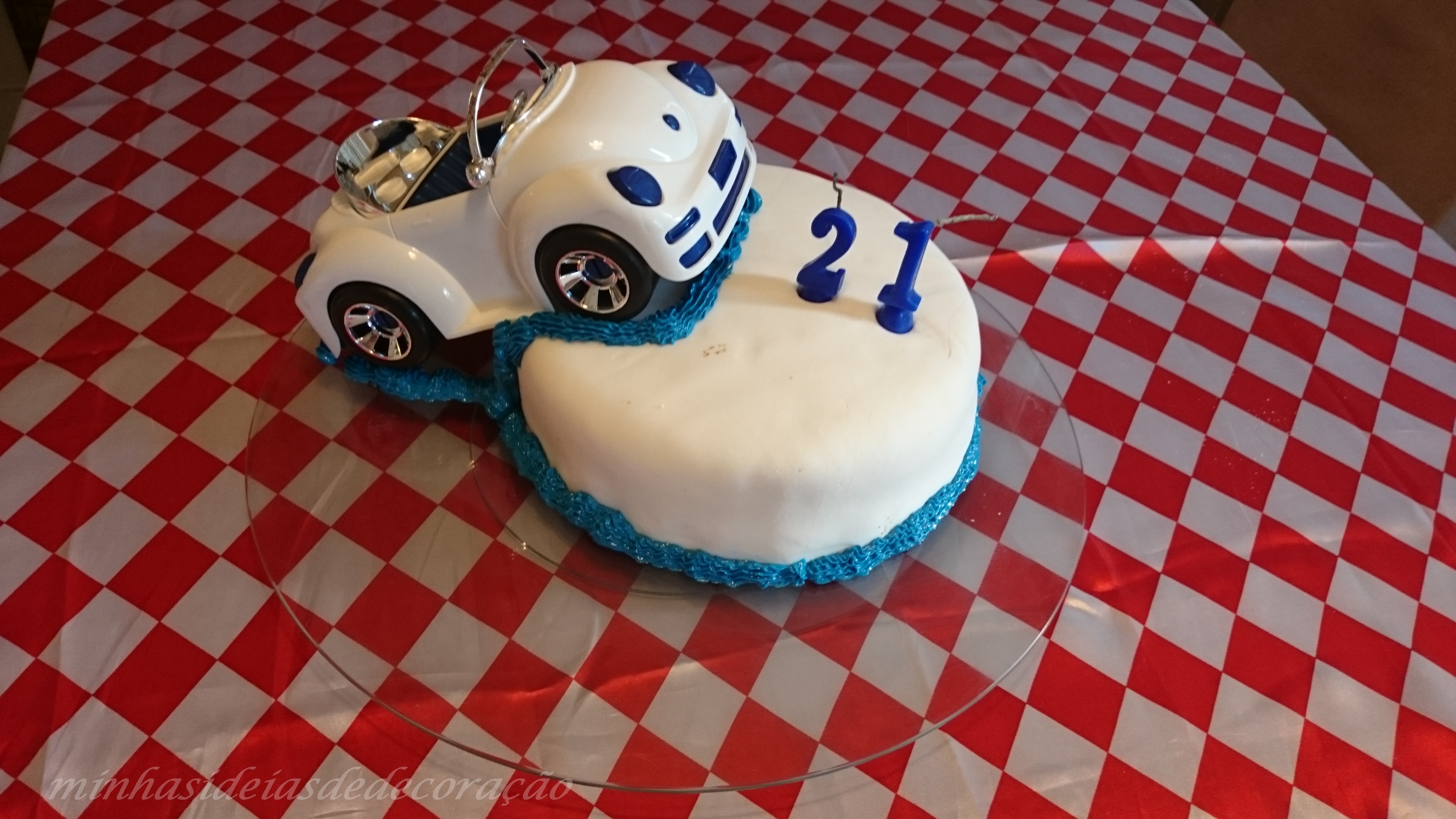 Agora me desculpem as boleiras. Não tenho a menor intimidade com confeitaria, mas arrisquei fazer o bolo. Comprei tudo pronto, a massa americana e o carro, mas gente é difícil!!!Abrir a massa é um desafio, não destruir a massa é uma vitória rsrsrs, mas eis o bolo do Yan em todos os ângulos.