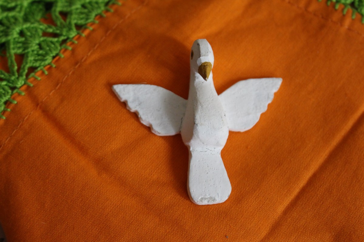Os pratos tem detalhes em palha e os guardanapos tem uma pomba do divino como marcador. Simbólico, não é?