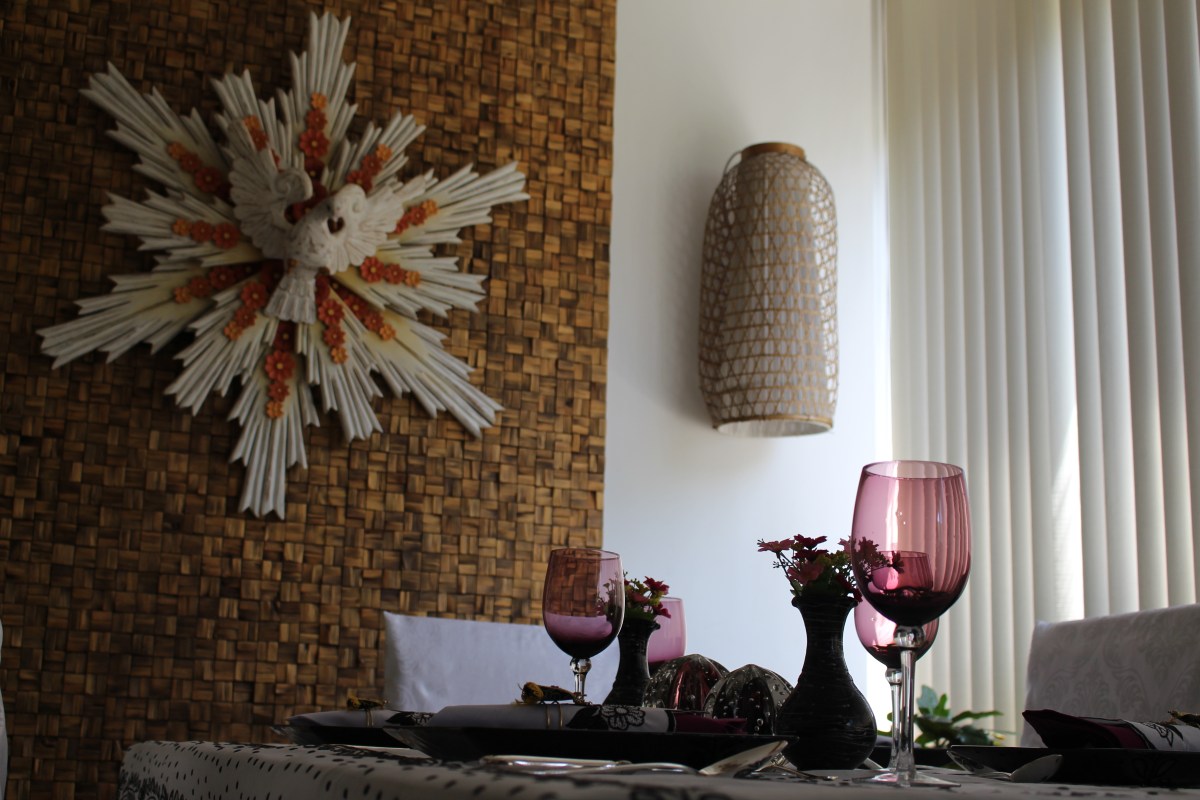 Escolhi meu conjunto de pratos pretos, mas para não ficar na obviedade do preto e branco resolvi ousar nos guardanapos. Coloquei meu conjunto branco com bordados pretos (acompanhando a toalha), mas junto estava um outro pink. Eles deram uma vida toda especial a mesa e combinou com essa taças quase da mesma cor.