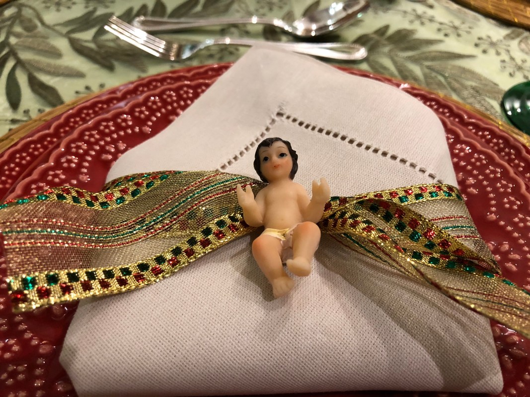 Agora o detalhe especial. Eu sempre trago o Menino Jesus para a minha mesa de Natal. Acho que Ele é o Natal, Ele é o motivo de estarmos todos ali. Eis o Menino Jesus: